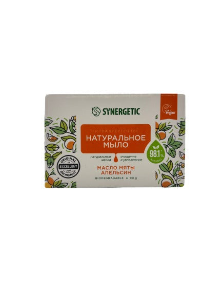 Синергетик Натуральное туалетное мыло масло мяты и апельсин 90гр
