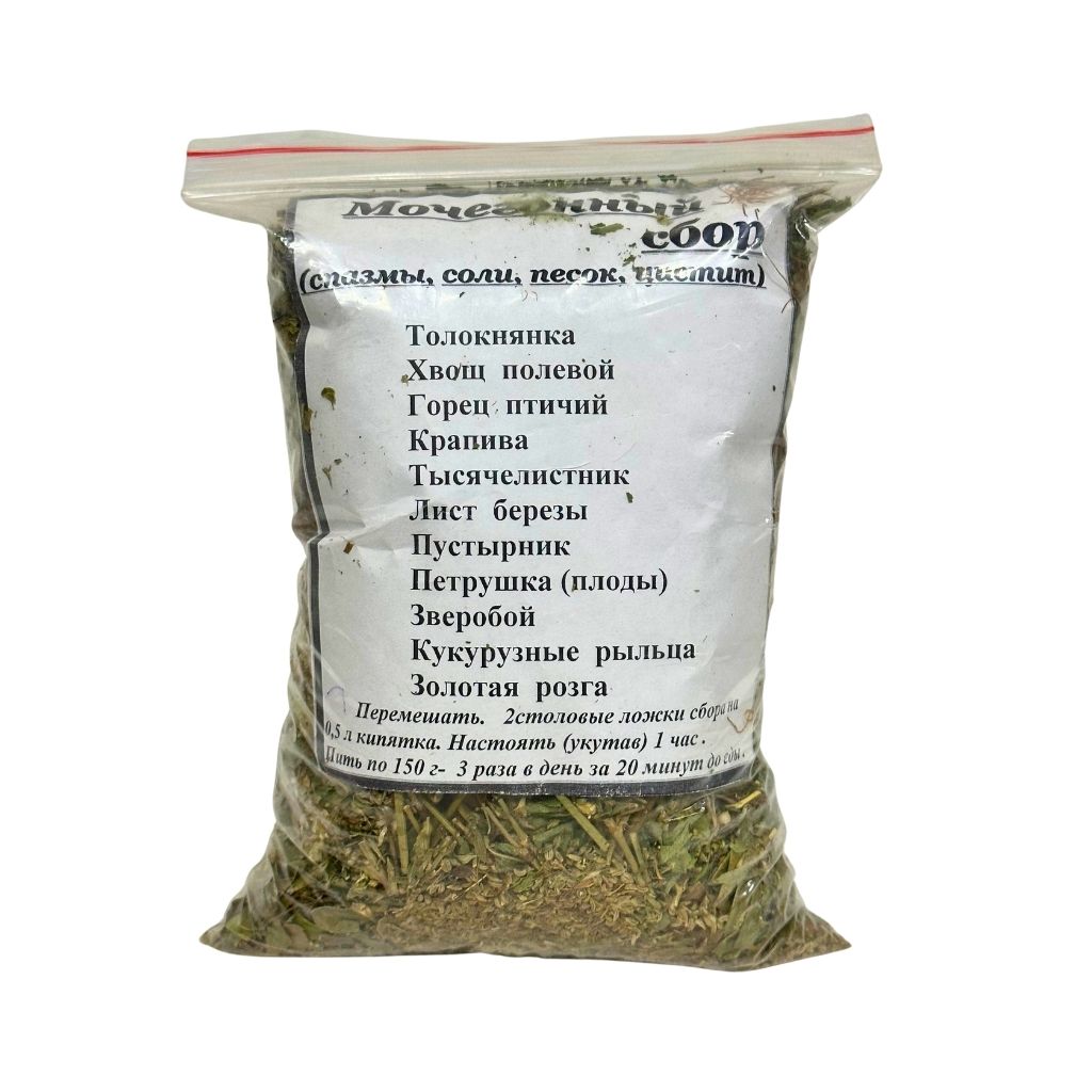 Состав: Толокнянка. Хвощ полевой. Горец, птичий. Крапива. Тысячелистник. Лист березы. Пустырник. Петрушка (плоды). Зверобой. Кукурузные рыльца. Золотая розга.