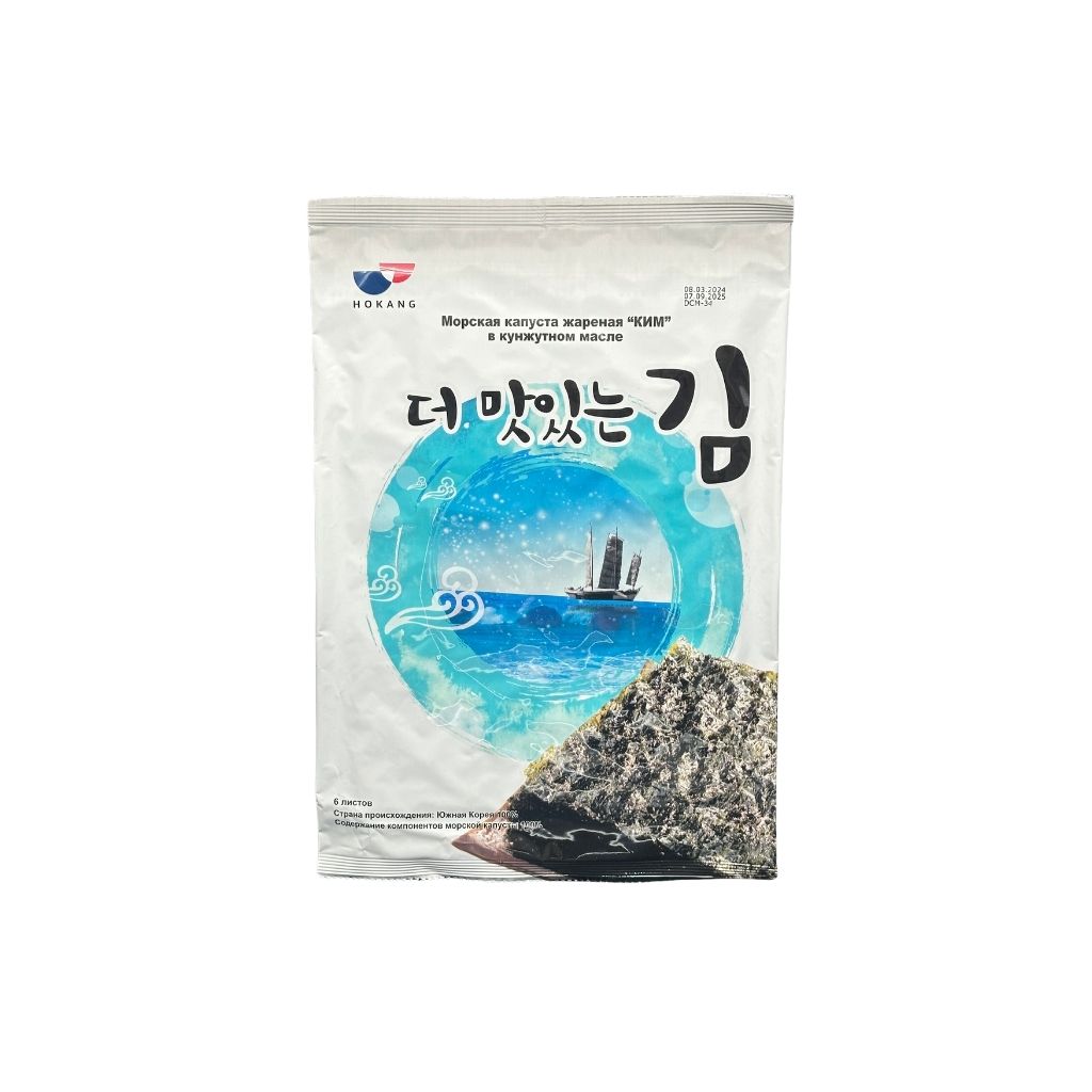 Морская капуста "КИМ" выращена и произведена в Южной Корее. "КИМ" специально выращивают на морских плантациях юго-западного побережья Южной Кореи. Жареная морская капуста «КИМ» – это традиционная корейская закуска с хрустящей текстурой и множеством полезных свойств. Необычный вкус водорослей понравится любителям азиатской пищи и станет хорошим дополнением к вареному рису.